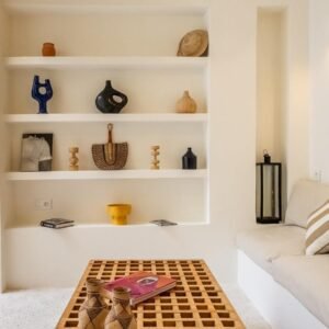 Le Riad Kali, conçu par un designer renommé, allie luxe et authenticité. Chaque détail y est pensé pour une ambiance chaleureuse. Dès votre entrée, découvrez un salon élégant aux canapés haut de gamme. Cet espace offre une détente absolue. Autour de cet espace central, vous découvrirez un bureau indépendant, un salon d’hiver agrémenté d’une magnifique cheminée, un coin TV encastré dans une superbe bibliothèque et une spacieuse salle à manger. La cuisine, bien que non accessible aux hôtes, se trouve également à ce niveau, accompagnée d’un WC.