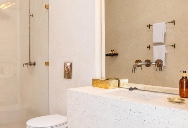 Toilettes séparées pour une intimité maximale au sein de chambre moutarde